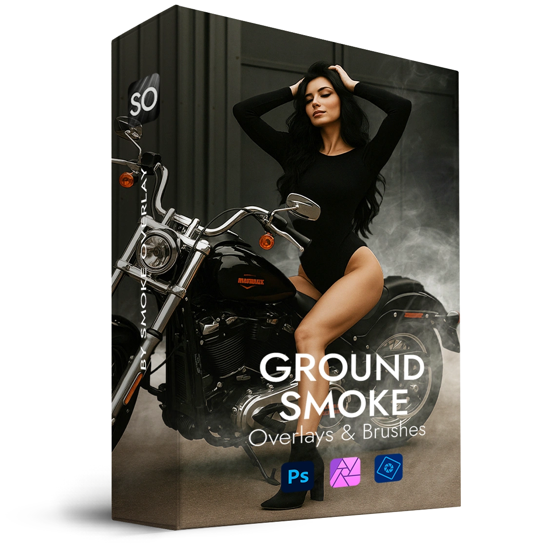 Ground smoke overlays are images of special smoke that you can easily blend with your photos using any photo editing software like Adobe Photoshop, Photoshop Elements or Affinity Photo.